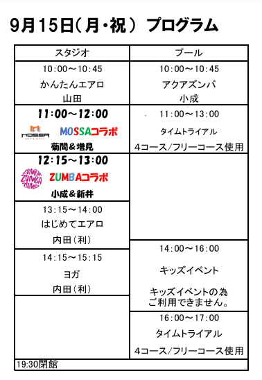 9月15日(月) 祝日プログラム