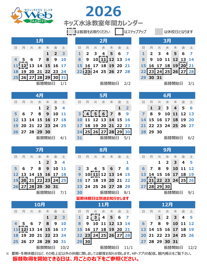 キッズ水泳年間カレンダー